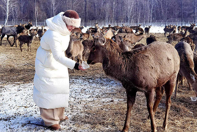 旅程首站是野灵活物救护站及鹿场,梅花鹿在雪地中灵动穿梭,时常俯首舔食旅客掌心饲料,憨态可掬的式样招引世东说念主存身。指尖触碰鹿群柔嫩外相的瞬息,东说念主与当然共生的暖意便罢明晰冬日寒凉。