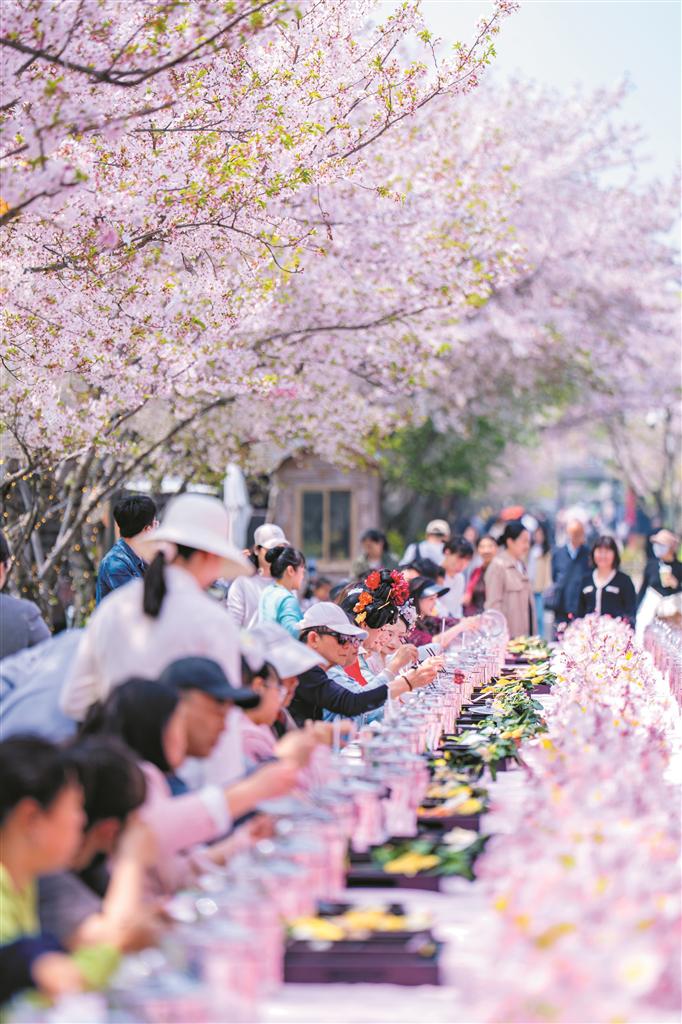 “距离三公里就启动堵了,不外好在技术不长。现象额外好意思,好意思景值得恭候。”上海旅客黄先生带着家东谈主驱车来鼋头渚赏樱,一家东谈主从日间待到晚上。景区冲破传统赏樱模式,将樱海景致与吴地文化会通,搭配古风演艺、樱花市集、露营打卡,日均理财旅客超7万东谈主次。