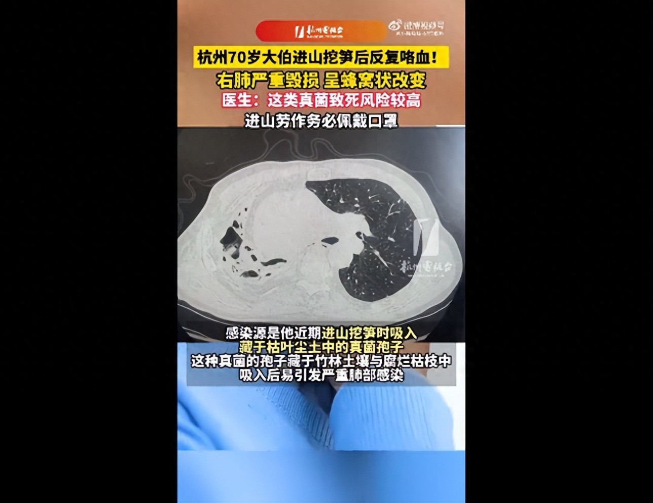 医师先容,马尔尼菲蓝状菌(曾用名:马尔尼菲青霉菌),是一种世俗存在于当然环境中的条目致病性真菌,在我国南边及东南亚地区尤为常见,竹鼠是其主要自然宿主,银星竹鼠带菌率高达96%。这种真菌的孢子,就暗藏在竹林泥土、失足枯枝、落叶层中。一朝被东谈主体吸入,便会在肺部定植、繁衍,激勉致命的深部真菌感染。现在,王大伯在区二院给与活动抗真菌调停后,病情已趋于踏实,后续将在呼吸科门诊依期复查胸部CT,监测肺部复原情况。医师提示,进山劳顿领导口罩是抗击真菌最浅显、最有用的珍惜。开首丨小强热线、杭州电视台、潇湘晨报