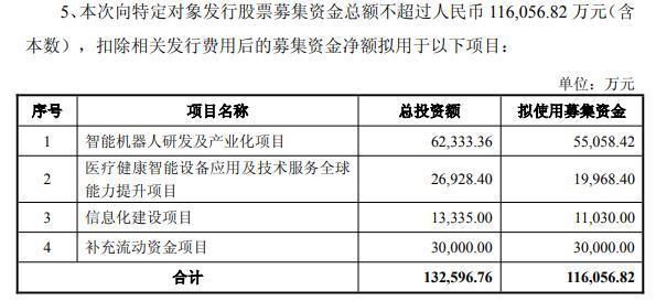 公司这次募资净额拟用于智能机器东说念主研发及产业化、医疗健康智能拓荒诈骗实时刻管事各人才智提高、信息化缔造、补充流动资金等样貌。